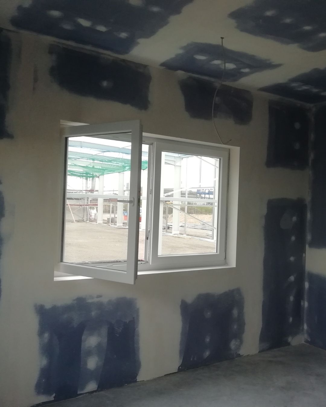 - Errichtung stabiler Gipskartonwände zur klaren Strukturierung von Büro-, Besprechungs- und Lagerbereichen